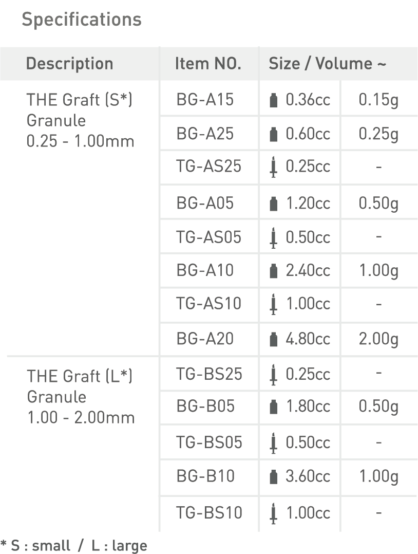 Thanks to highly efficient manufacturing process, THE Graft™ is free from any organic components that might be potential causes of infection or immune reaction. In addition the unique process helps preserve the physical properties of THE Graft™ with its native osseous structure.